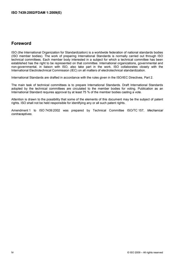 L'Amendement 1 à l'ISO 7439:2002 a été élaboré par le comité technique ISO/TC 157, Contraceptifs