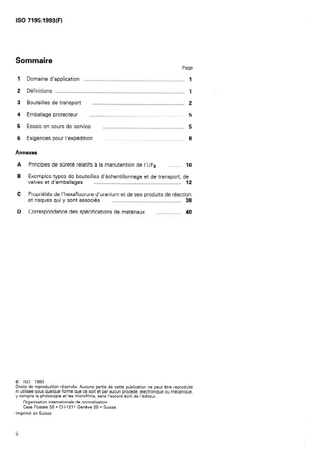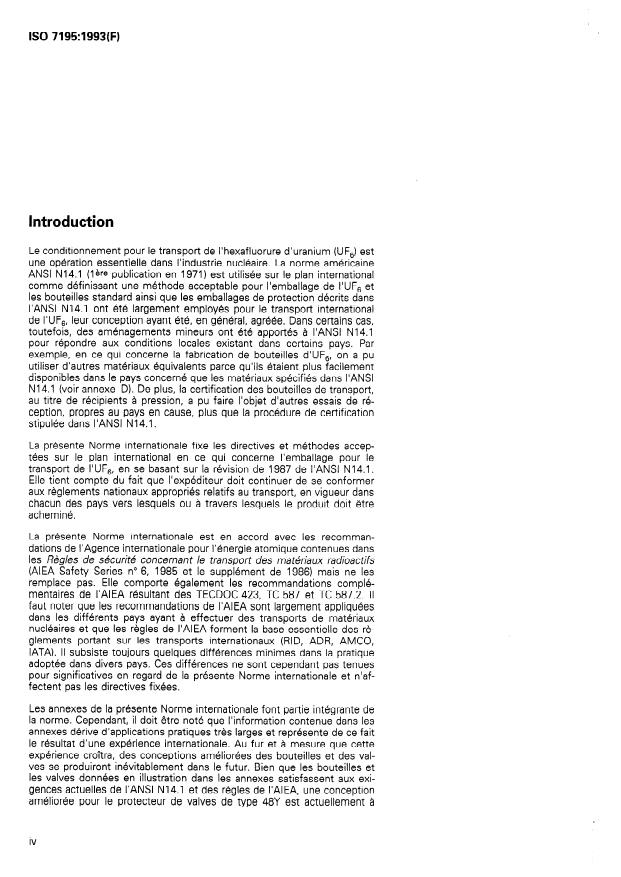 ISO 7195:1993 - Emballage de l'hexafluorure d'uranium (UF6) en vue de son transport