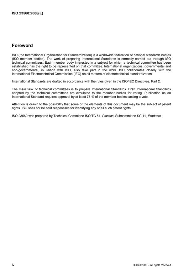 ISO 23560 was prepared by Technical Committee ISO/TC 61, Plastics, Subcommittee SC 11, Products.