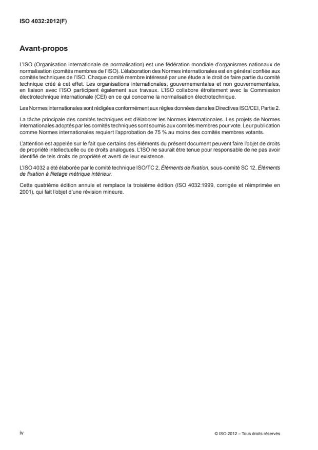 Cette quatrième édition annule et remplace la troisième édition (ISO 4032:1999, corrigée et réimprimée en