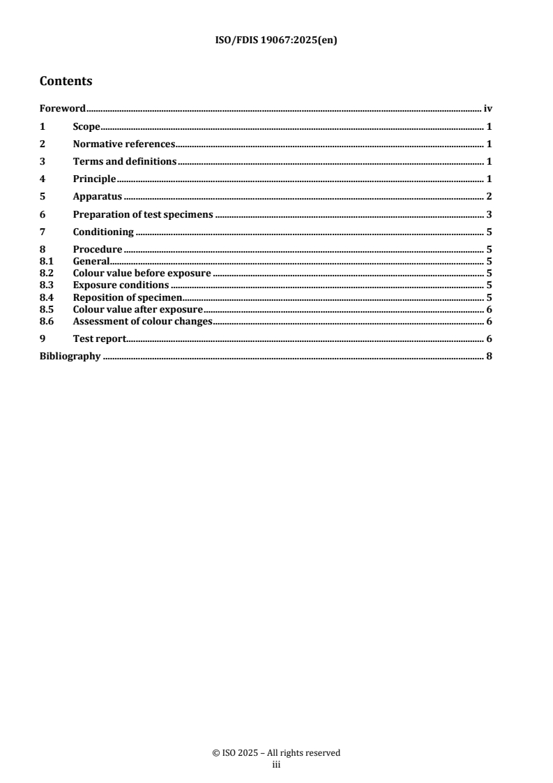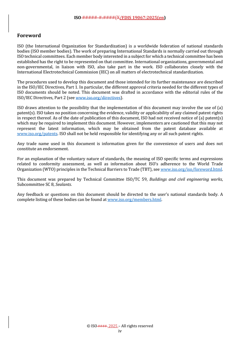 REDLINE ISO/FDIS 19067 - Building and civil engineering sealants — Determination of changes in colour after laboratory accelerated weathering procedures Released:10/8/2025