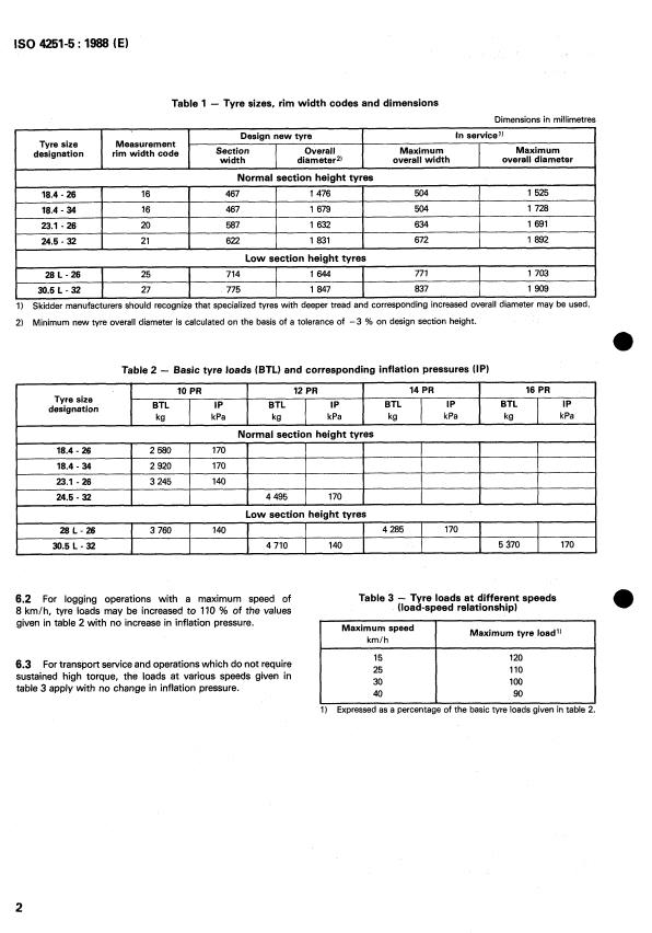 1 Scope and field of application basic tyre load for log skidders: Maximum load of total ve-