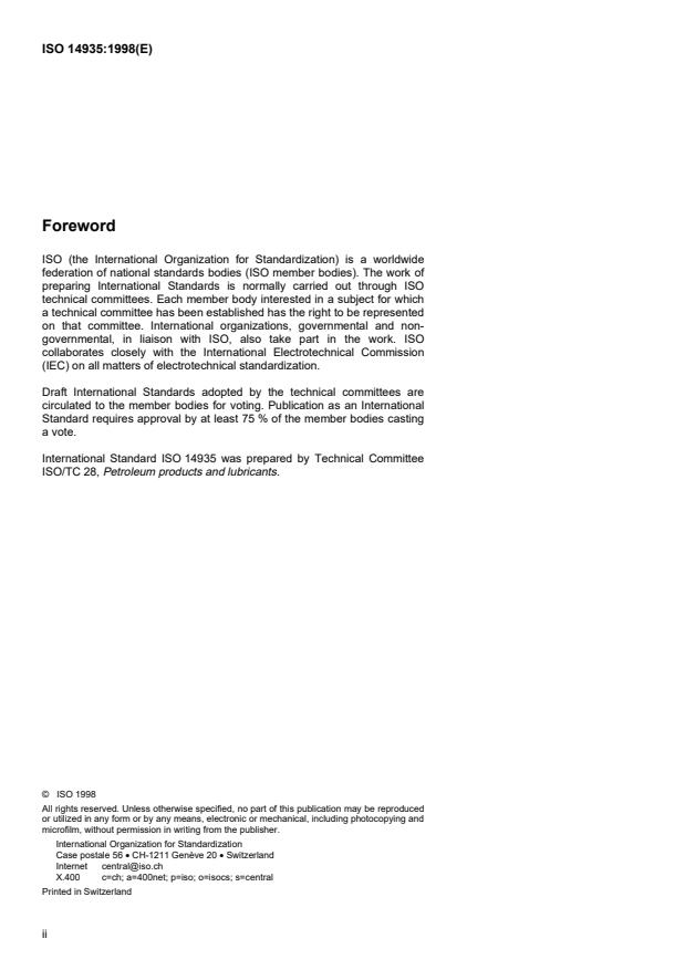 ISO 14935:1998 is classified under the following ICS (International Classification for Standards) categories: 75.080 - Petroleum products in general. The ICS classification helps identify the subject area and facilitates finding related standards.