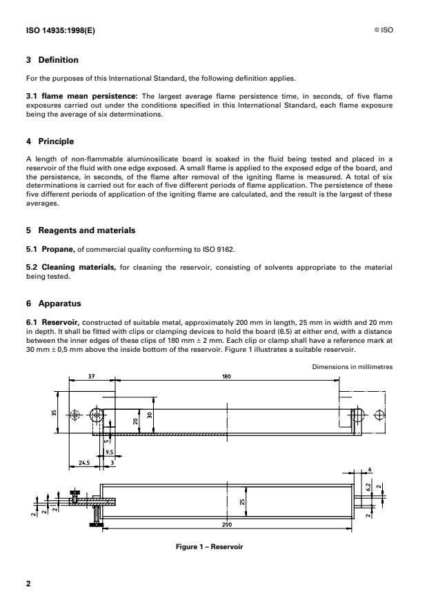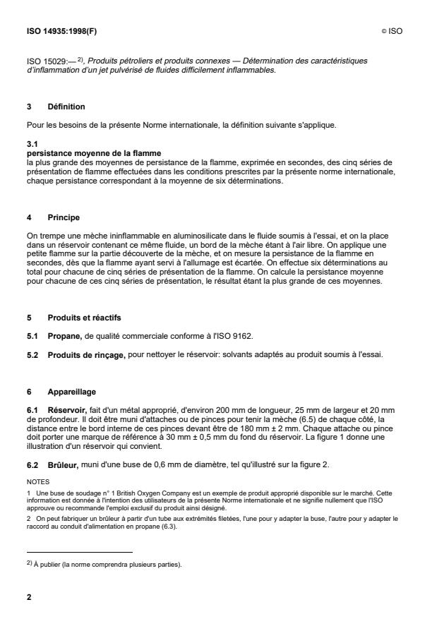 ISO 14935:1998 is a standard published by the International Organization for Standardization (ISO). Its full title is "Petroleum and related products — Determination of wick flame persistence of fire-resistant fluids". This standard covers: Petroleum and related products — Determination of wick flame persistence of fire-resistant fluids