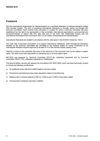 Cette deuxième édition annule et remplace la première édition (ISO 3819:1985), qui a fait l’objet d’une