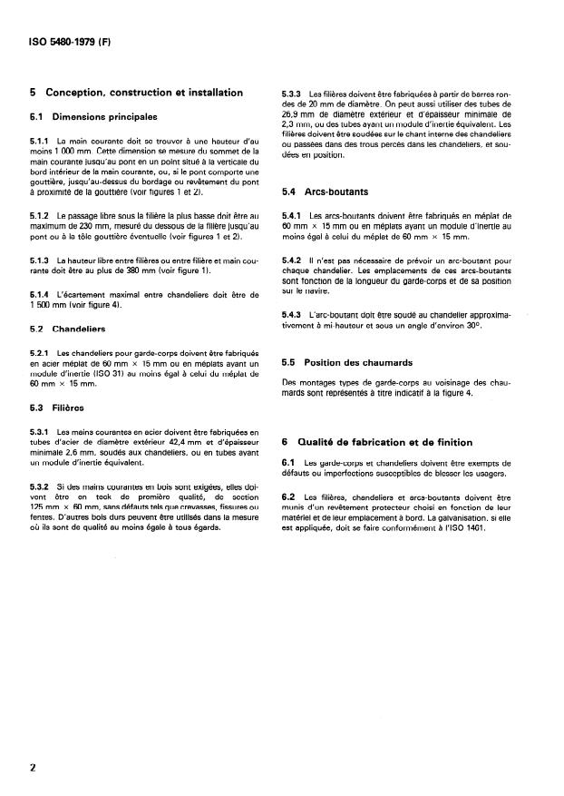 ISO 5480:1979 is a standard published by the International Organization for Standardization (ISO). Its full title is "Shipbuilding — Guardrails for cargo ships". This standard covers: Specifies dimensions, materials, quality of manufacture and finish for guardrails and stanchions which are fitted on exposed freeboard and superstructure decks of cargo ships. Does not apply for guardrails which are fitted near compasses. These requirements comply with the regulations of the International Convention on Loadlines 1966.
