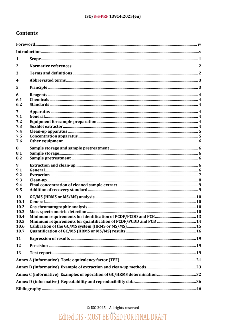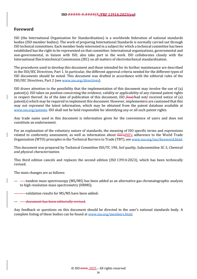 REDLINE ISO/PRF 13914 - Soil, treated biowaste and sludge — Determination of dioxins and furans and dioxin-like polychlorinated biphenyls by gas chromatography with mass selective detection (high resolution mass spectrometry, HRMS, and tandem mass spectrometry, MS/MS) Released:15. 12. 2025