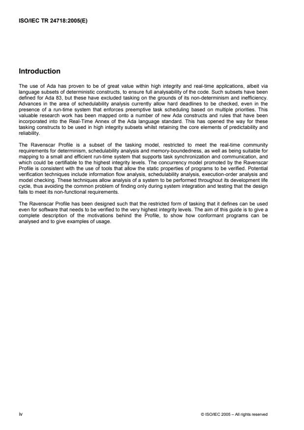 ISO/IEC TR 24718:2005 - "Guide for the use of the Ada Ravenscar Profile in high integrity systems" is a Technical Report that documents the motivations, definition, analysis techniques and usage examples for the Ada Ravenscar Profile. Adopted from a University of York technical report, it explains how a restricted subset of Ada tasking can be used to achieve determinism, schedulability analysis and memory-boundedness required for real‑time, high‑integrity systems. The guide shows how Ravenscar-conformant programs can be analysed, verified and mapped to small, certifiable run‑time systems.
