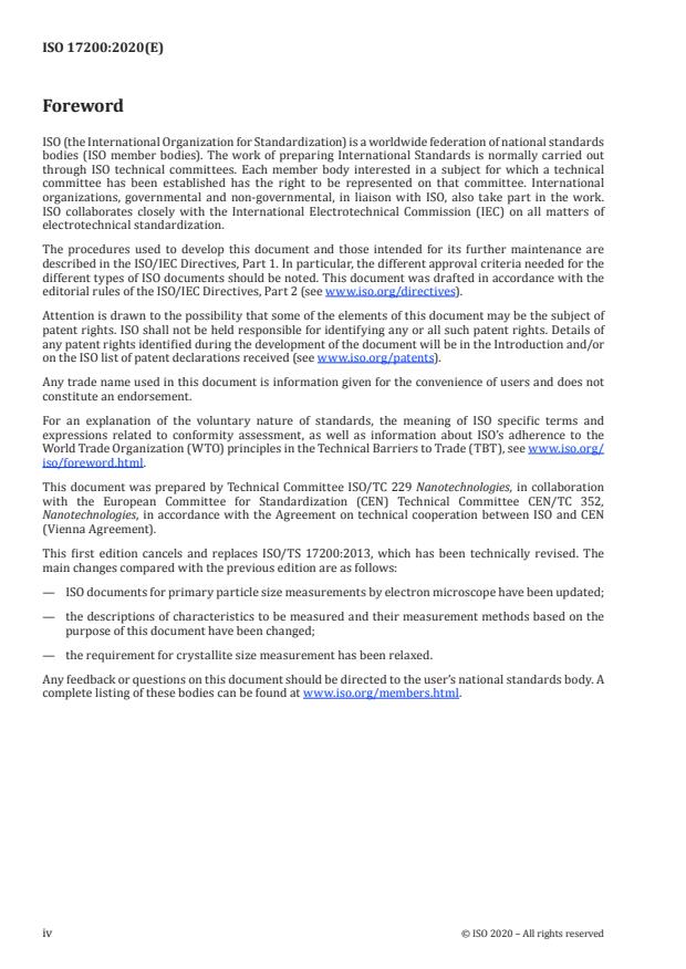 Keywords: ISO 17200:2020, nanoparticles in powder form, particle size, specific surface area, chemical composition, XRD, TEM, SEM, BET, nanotechnology standard, measurement methods.