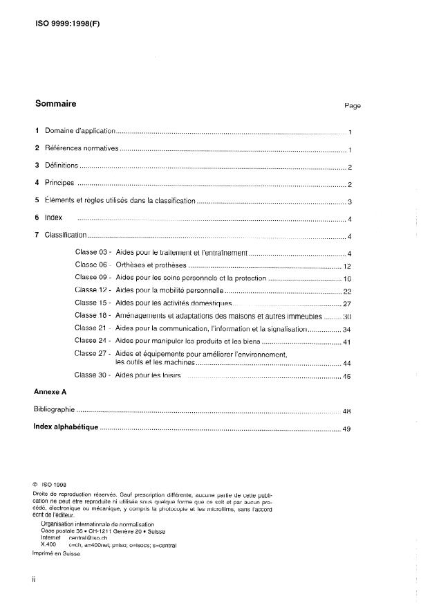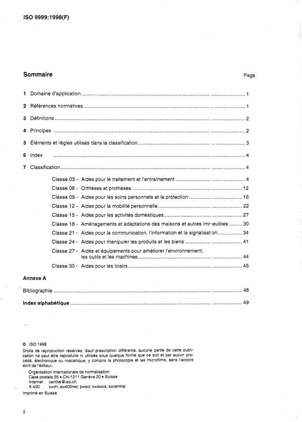 ISO 9999:1998 - Aides techniques pour personnes atteintes d'un handicap -- Classification