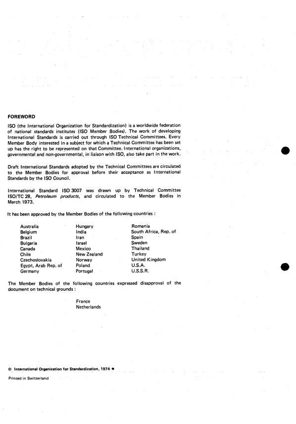 UDC 665.5 : 620.1 : 536.423 Ref. No. IS0 3007-1974 (E)