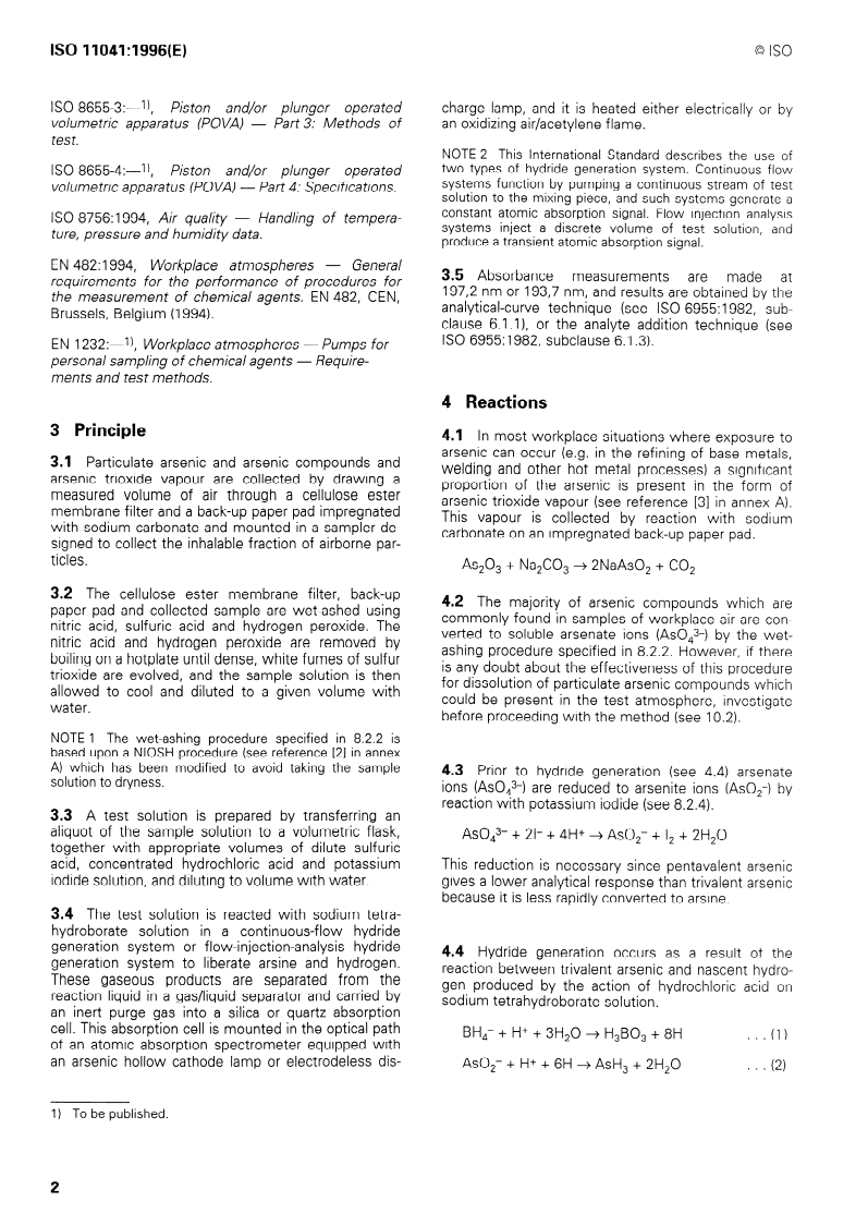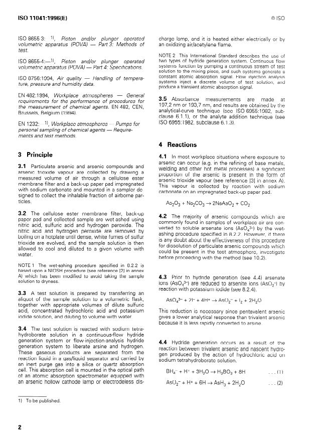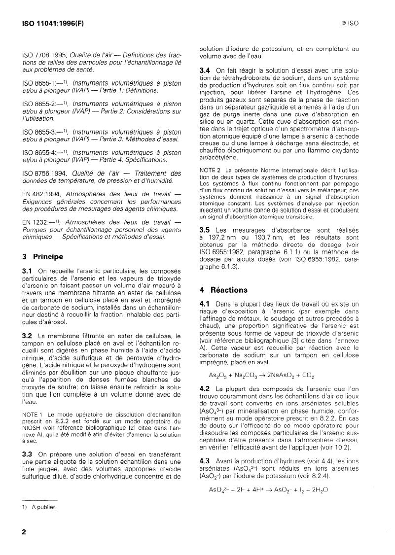 Keywords: ISO 11041, workplace air, particulate arsenic, arsenic trioxide vapour, hydride generation, atomic absorption spectrometry, arsenic monitoring, inhalable fraction, occupational exposure.