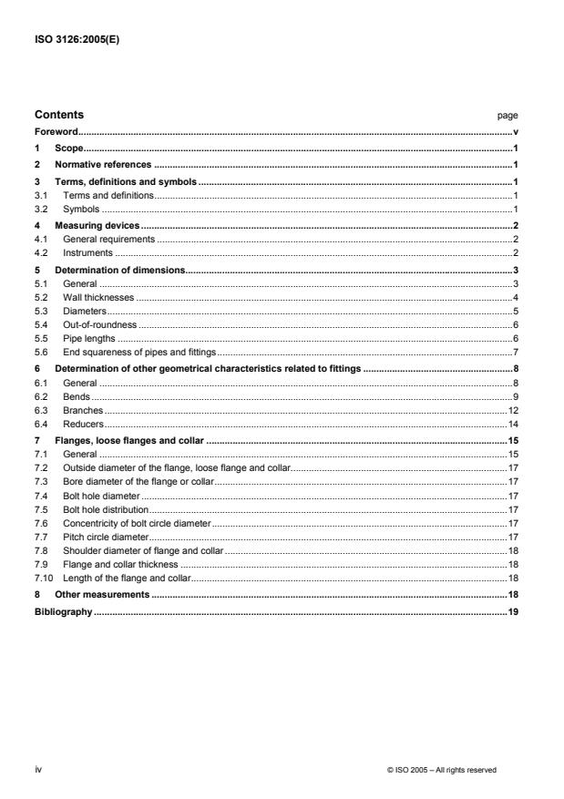Keywords: ISO 3126:2005, plastics piping systems, dimensional measurement, wall thickness, diameter, squareness, calibration, measurement accuracy, flange dimensions.