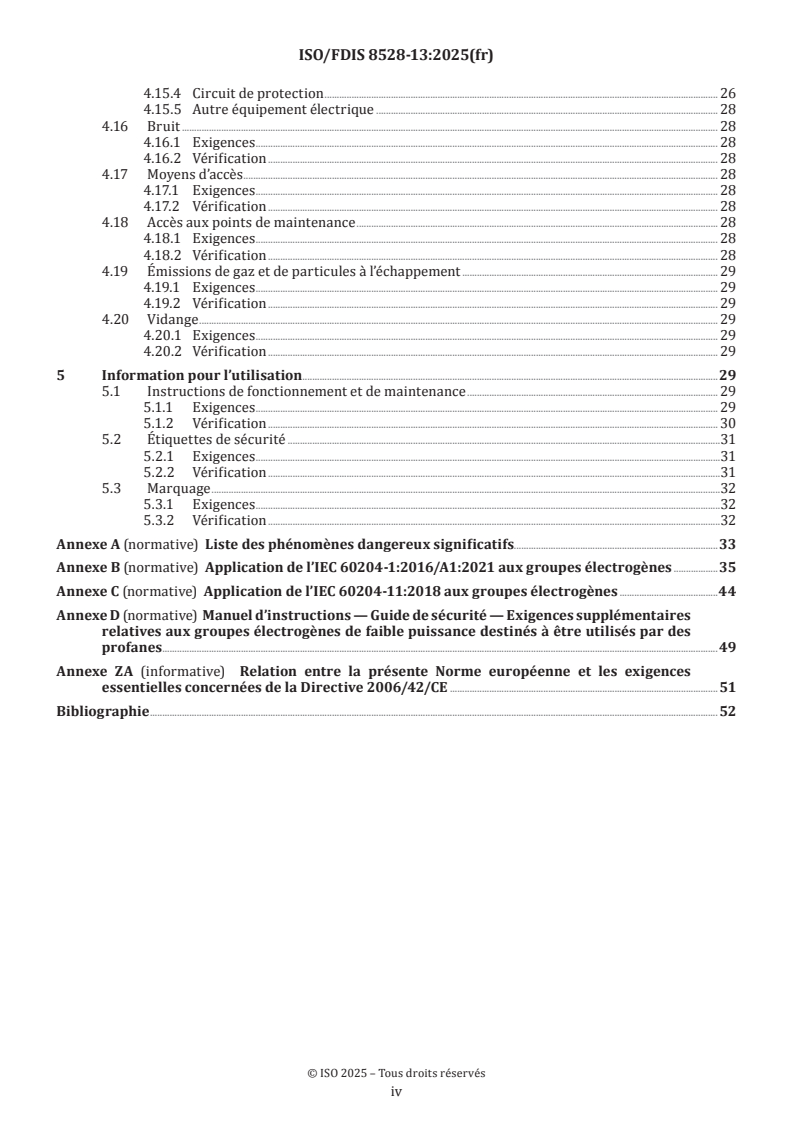 ISO/FDIS 8528-13 - Groupes électrogènes à courant alternatif entraînés par moteurs alternatifs à combustion interne — Partie 13: Sécurité Released:19. 01. 2026