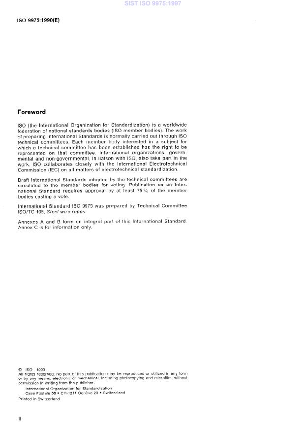 ISO 9975:1990 is a standard published by the International Organization for Standardization (ISO). Its full title is "Round non-alloy steel wires for locked coil mine winding ropes — Specifications". This standard covers: Specifies: a) the dimensional tolerances; b) the mechanical characteristics; c) the conditions with which coatings, if any, shall comply; d) the conditions of sampling and control. Applies to round, bright or zinc-coated wires of nominal diameters between 1 mm and 3,5 mm.