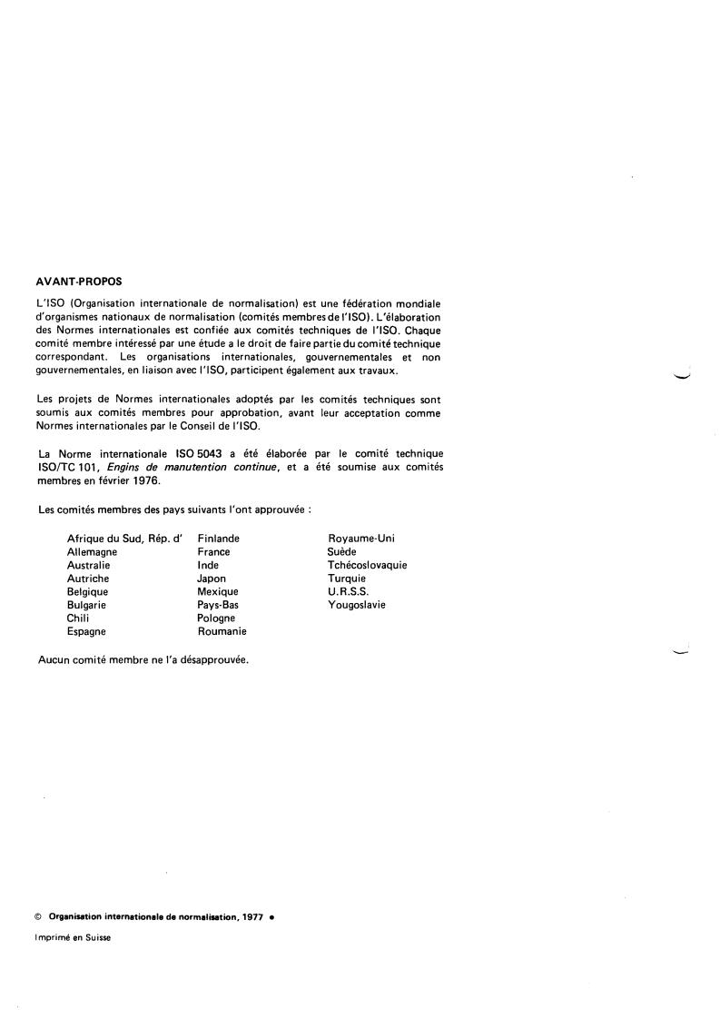 lSO/TC 101, Engins de manutention continue, et a été soumise aux comités