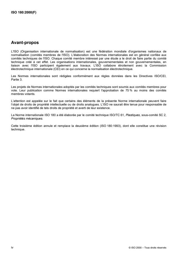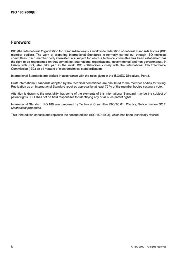 International Standard ISO 180 was prepared by Technical Committee ISO/TC 61, Plastics, Subcommittee SC 2,
