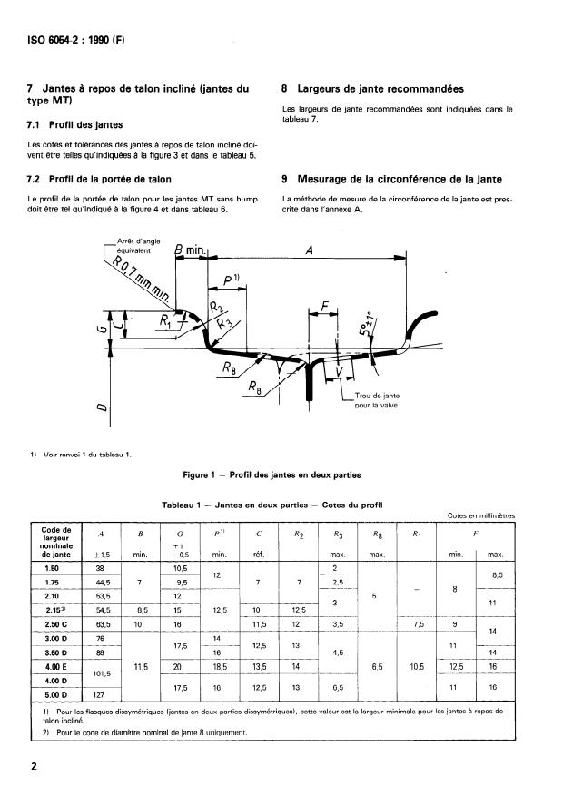 1) II est prévu d’entreprendre l’étude de l’harmonisation des cotes et des tolérances des jantes 2.50 C, 3.00 D et 4.00 E, entre la future ISO 37