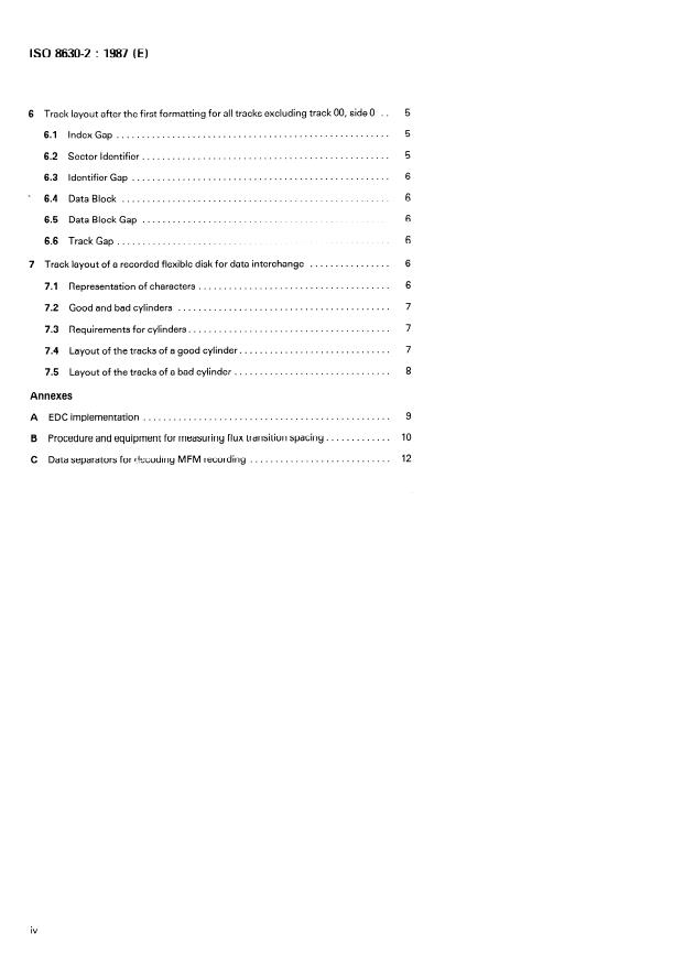 ISO 8630-2:1987 is a standard published by the International Organization for Standardization (ISO). Its full title is "Information processing — Data interchange on 130 mm (5.25 in) flexible disk cartridges using modified frequency modulation recording at 13 262 ftprad, on 80 tracks on each side — Part 2: Track format A for 77 tracks". This standard covers: Information processing — Data interchange on 130 mm (5.25 in) flexible disk cartridges using modified frequency modulation recording at 13 262 ftprad, on 80 tracks on each side — Part 2: Track format A for 77 tracks
