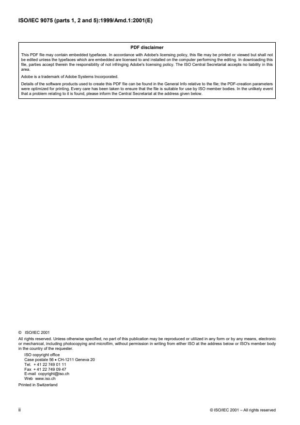 ISO/IEC 9075 (parts 1, 2 and 5):1999/Amd.1:2001(E)