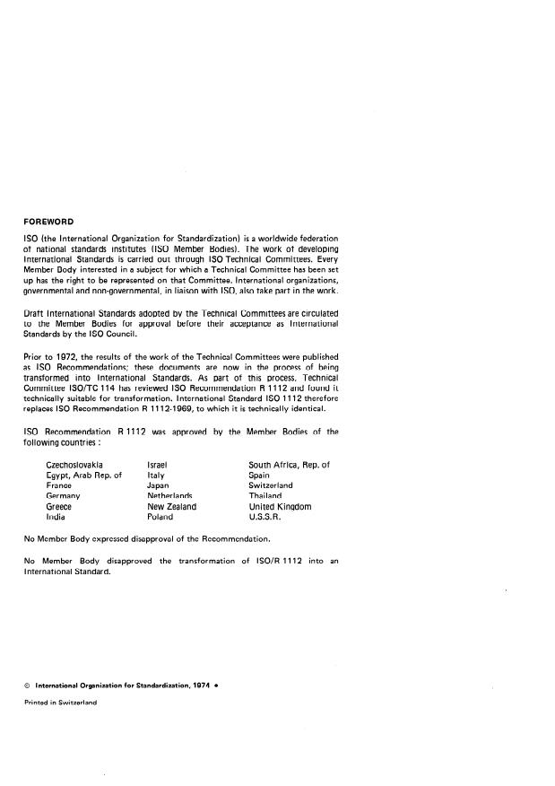 ISO Recommendation R 1112 was approved by the Member Bodies of the