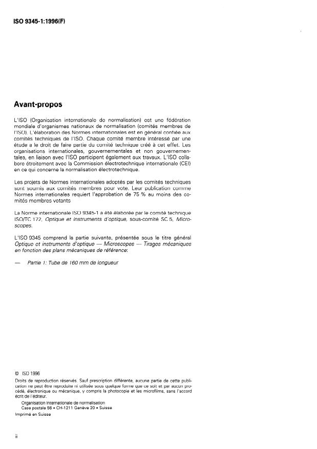 ISO 9345-1:1996 - Optique et instruments d'optique -- Microscopes -- Tirages mécaniques en fonction des plans mécaniques de référence