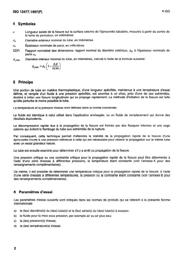 ISO 13477:1997 - Tubes en matieres thermoplastiques pour le transport des fluides -- Détermination de la résistance a la propagation rapide de la fissure (RCP) -- Essai a petite échelle (S4)