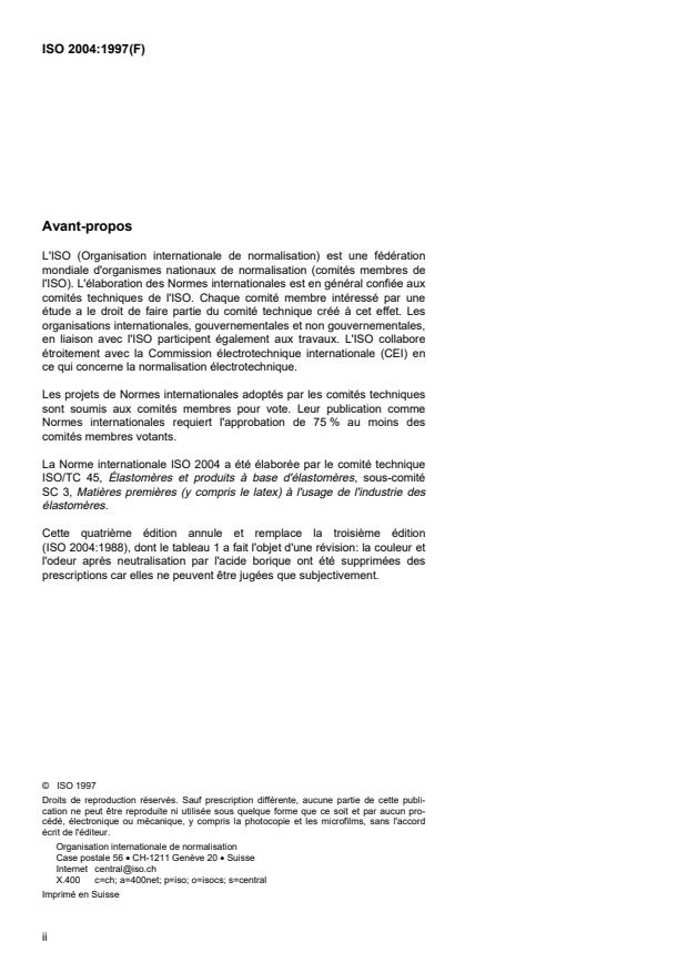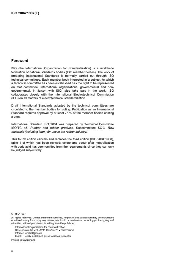 ISO 2004:1997 is classified under the following ICS (International Classification for Standards) categories: 83.040.10 - Latex and raw rubber. The ICS classification helps identify the subject area and facilitates finding related standards.