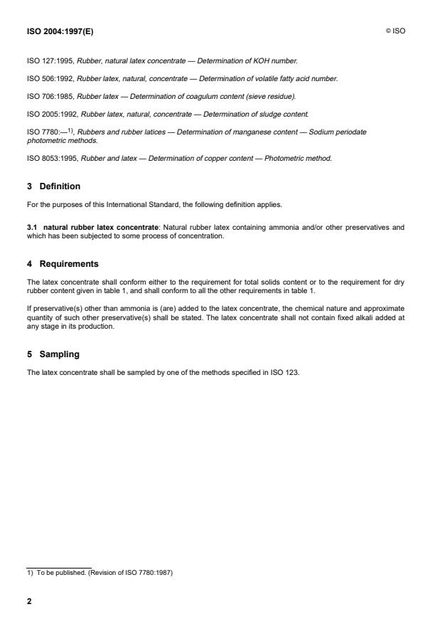ISO 2004:1997 - Natural rubber latex concentrate -- Centrifuged or creamed, ammonia-preserved types -- Specification