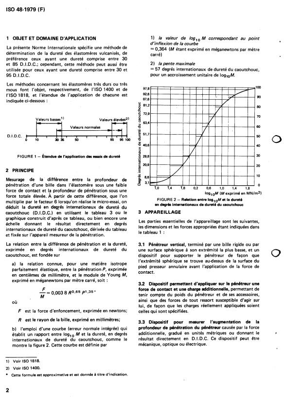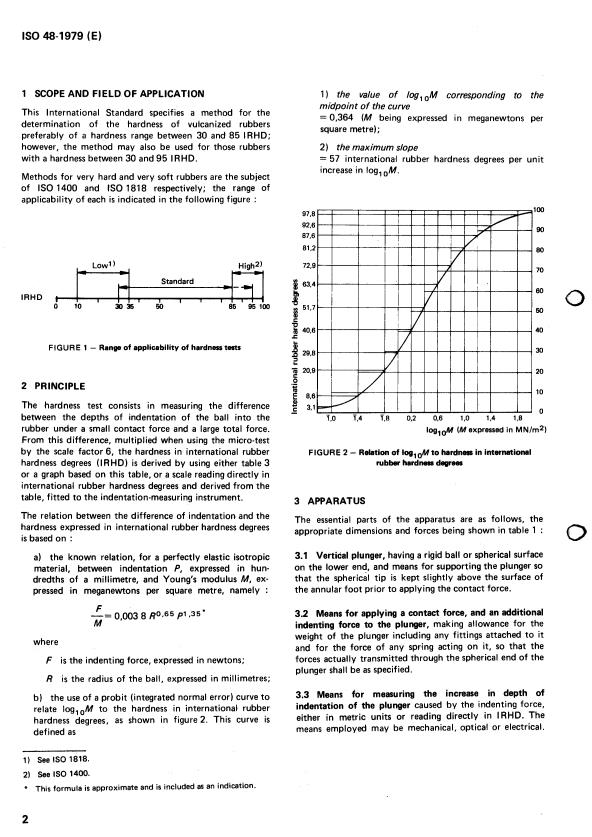 ISO 48:1979 is a standard published by the International Organization for Standardization (ISO). Its full title is "Vulcanized rubbers — Determination of hardness (Hardness between 30 and 85 IRHD)". This standard covers: Vulcanized rubbers — Determination of hardness (Hardness between 30 and 85 IRHD)