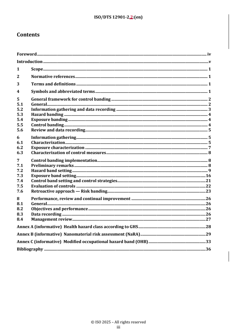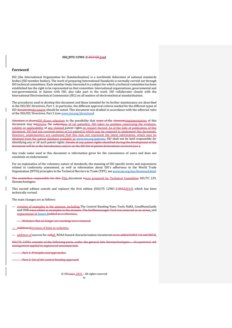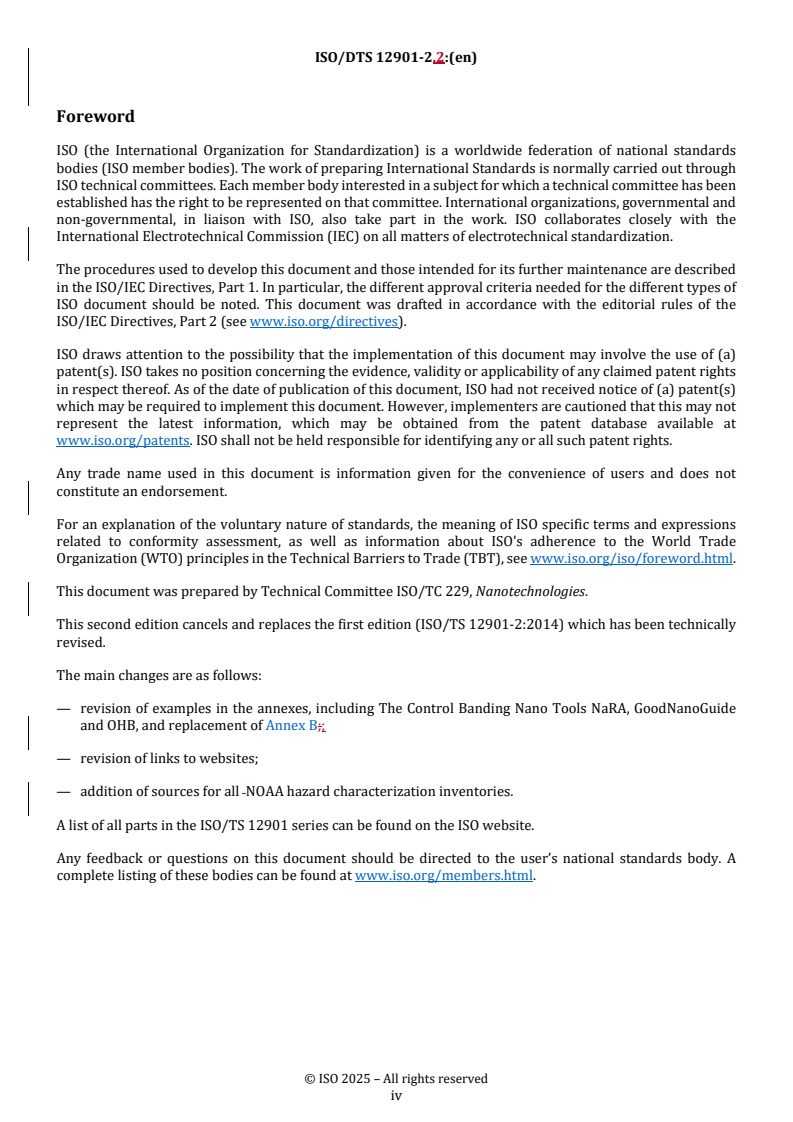 REDLINE ISO/DTS 12901-2 - Nanotechnologies — Occupational risk management applied to engineered nanomaterials — Part 2: Use of the control banding approach Released:7. 03. 2025