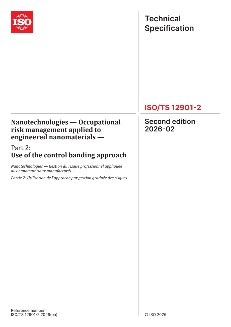 ISO/TS 12901-2:2026 - Nanotechnologies — Occupational risk management applied to engineered nanomaterials — Part 2: Use of the control banding approach