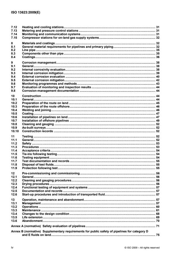 ISO 13623:2009 specifies requirements and gives recommendations for the design, materials, construction, testing, operation, maintenance and abandonment of pipeline systems used for transportation in the petroleum and natural gas industries. ISO 13623:2009 applies to pipeline systems on land and offshore, connecting wells, production plants, process plants, refineries and storage facilities, including any section of a pipeline constructed within the boundaries of such facilities for the purpose of its connection. A figure shows the extent of pipeline systems covered by ISO 13623:2009. ISO 13623:2009 applies to rigid, metallic pipelines. It is not applicable for flexible pipelines or those constructed from other materials, such as glass-reinforced plastics. ISO 13623:2009 is applicable to all new pipeline systems and can be applied to modifications made to existing ones. It is not intended that it apply retroactively to existing pipeline systems. ISO 13623:2009 describes the functional requirements of pipeline systems and provides a basis for their safe design, construction, testing, operation, maintenance and abandonment.