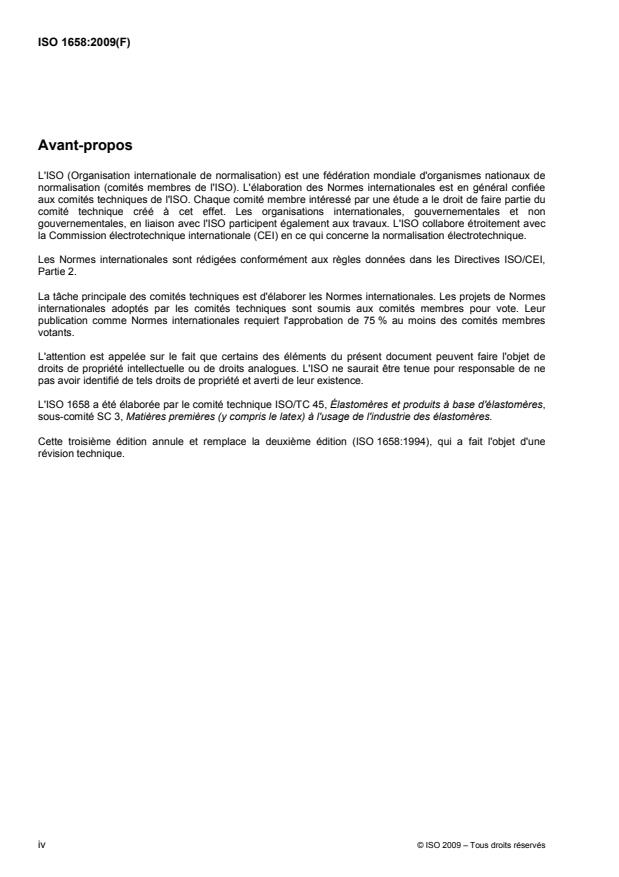 L'ISO 1658:2009 spécifie les essais physiques et chimiques sur caoutchoucs naturels crus, et les matériaux de référence, les formules de référence, l'appareillage et les méthodes de mise en oeuvre pour évaluer les caractéristiques de vulcanisation du caoutchouc naturel (NR).
