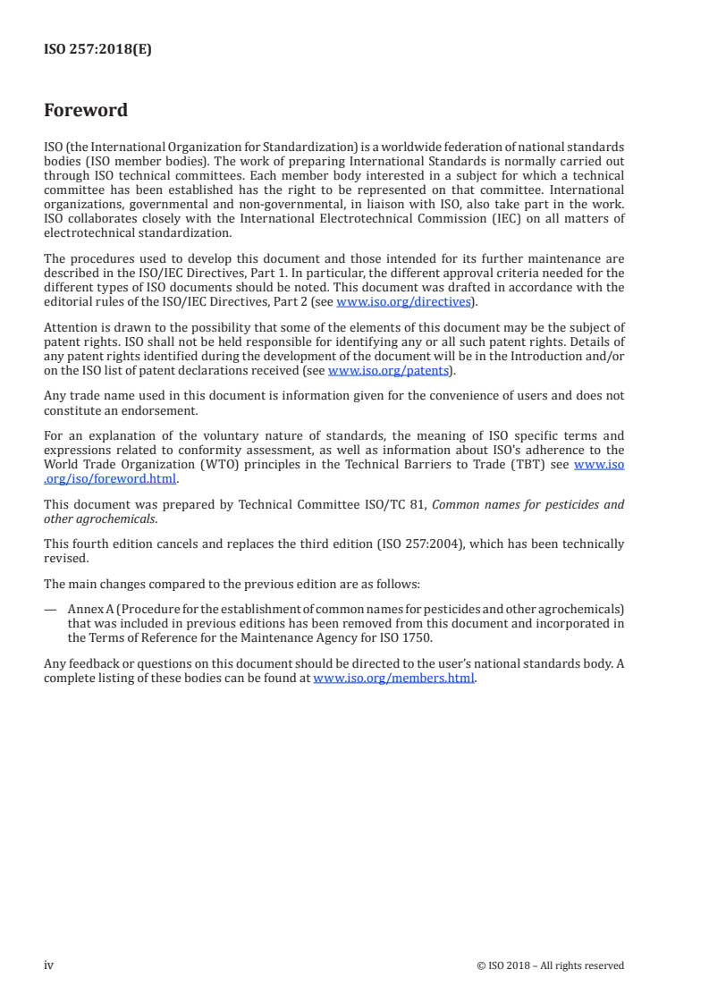 Keywords: ISO 257:2018, pesticides common names, agrochemical nomenclature, naming principles, ISO 1750, pesticide registration.