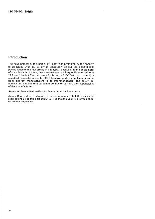 ISO 5841-3:1992 is a standard published by the International Organization for Standardization (ISO). Its full title is "Cardiac pacemakers — Part 3: Low-profile connectors (IS-1) for implantable pacemakers". This standard covers: Cardiac pacemakers — Part 3: Low-profile connectors (IS-1) for implantable pacemakers
