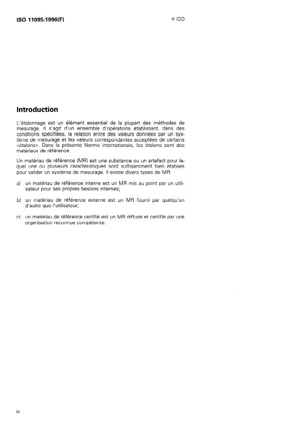 ISO 11095:1996 - Étalonnage linéaire utilisant des matériaux de référence
