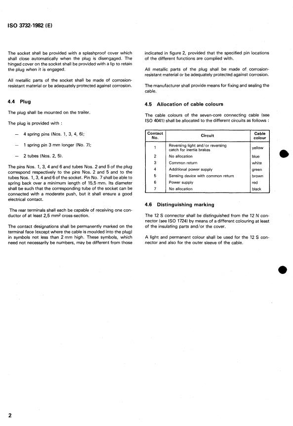 ISO 3732:1982 is a standard published by the International Organization for Standardization (ISO). Its full title is "Road vehicles — Electrical connections between towing vehicles and trailers with 6 or 12 V electrical equipment — Type 12 S (supplementary)". This standard covers: Road vehicles — Electrical connections between towing vehicles and trailers with 6 or 12 V electrical equipment — Type 12 S (supplementary)