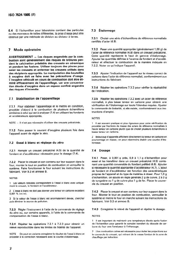 7.1 Stabilisation de l’appareillage 7.3.5 Répéter les opérations 7.3.2 avec un acier de référence