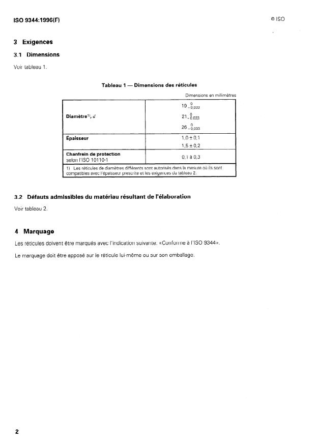 défauts résultant de l’élaboration, des réticules de diamètres 19 mm, 21 mm et 26 mm utilisés dans les oculaires