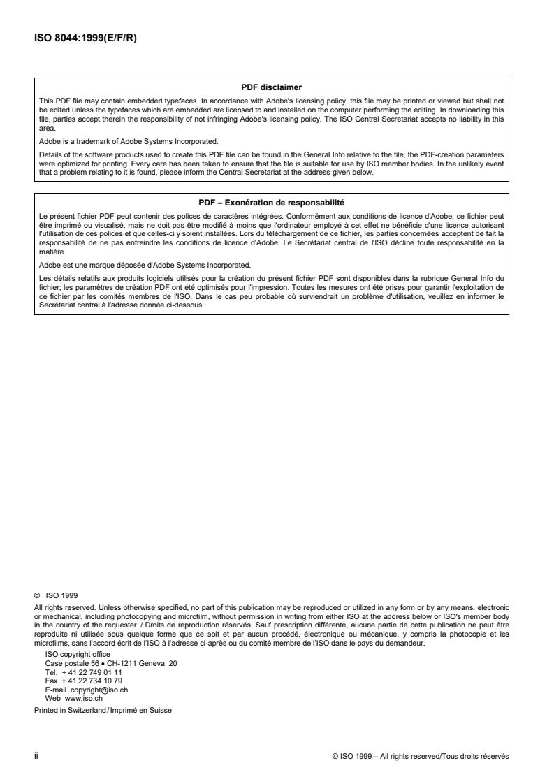 ii © ISO 1999 – All rights reserved/Tous droits réservés