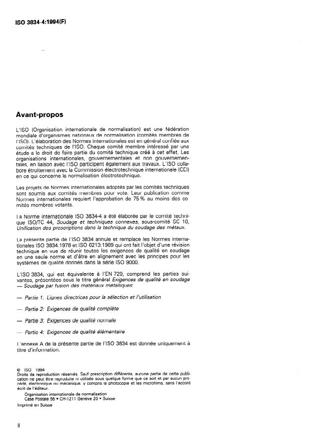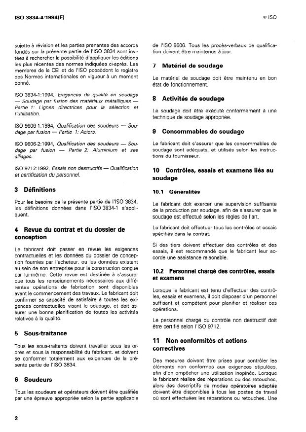 L’ISO 3834, qui est équivalente à I’EN 729, comprend les parties sui-