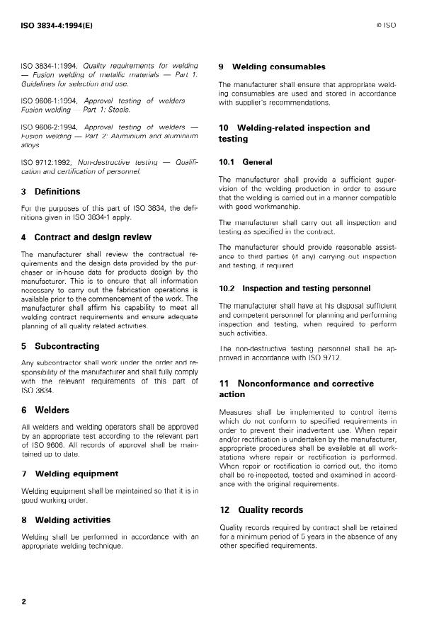 ISO 3834-4:1994 - Quality requirements for welding -- Fusion welding of metallic materials