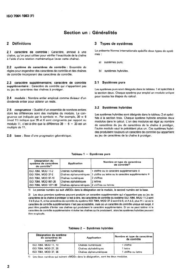 ISO 7064:1983 - Traitement des données -- Systemes de caracteres de contrôle
