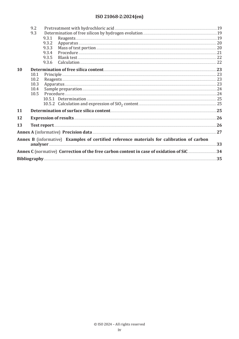 Keywords: ISO 21068-2:2024, chemical analysis, silicon‑carbide, silicon‑nitride, silicon‑oxynitride, sialon, refractory products, total carbon, free carbon, silicon carbide, free silica.