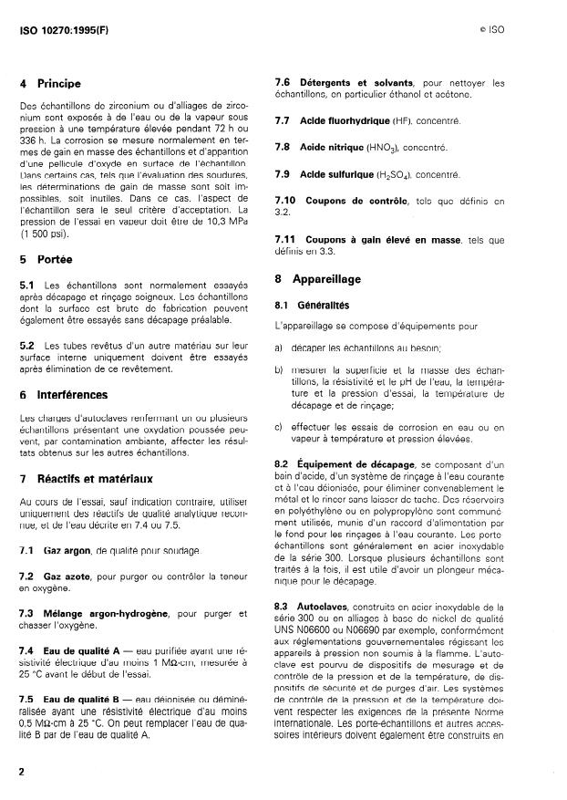 ISO 10270:1995 - Corrosion des métaux et alliages -- Essais de corrosion aqueuse des alliages de zirconium utilisés dans les réacteurs nucléaires
