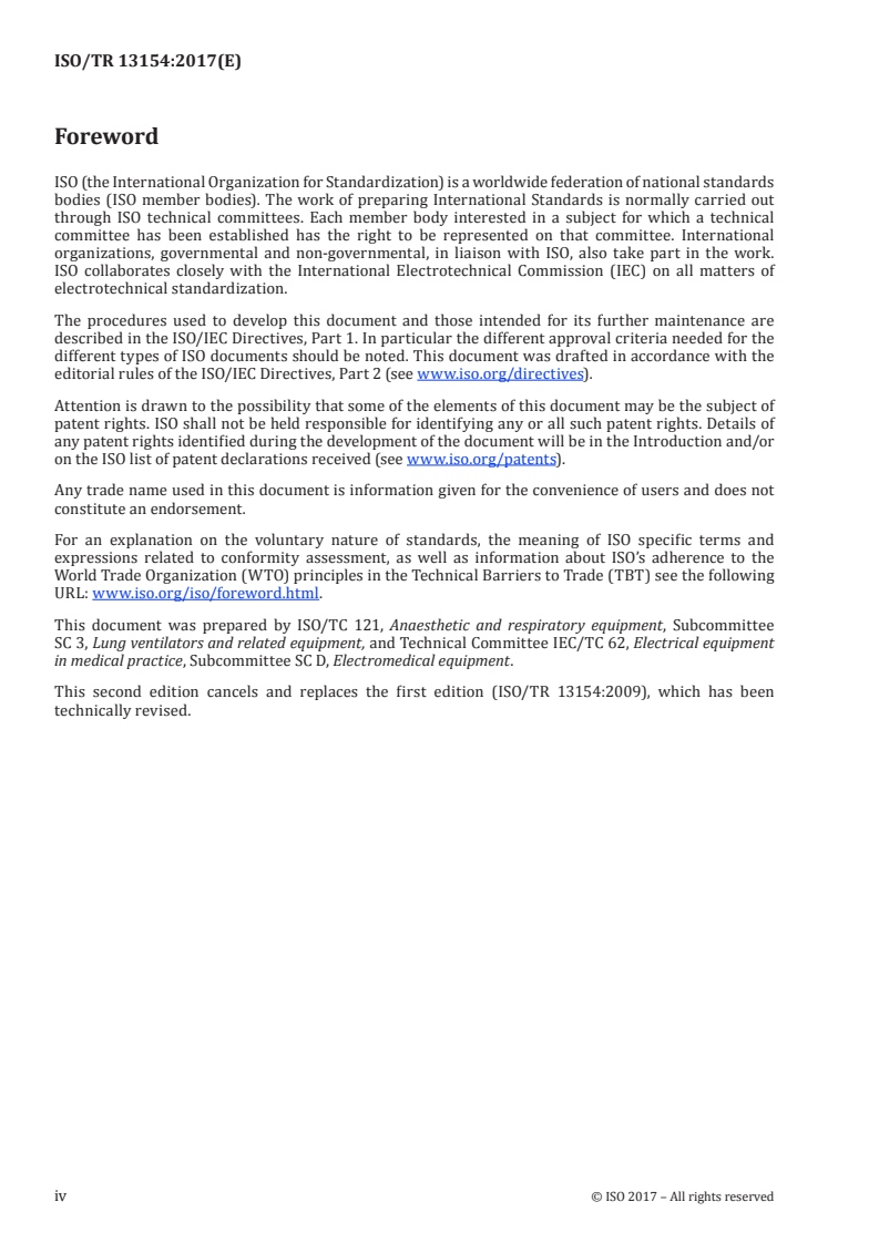 ISO/TR 13154:2017 is a technical report published by the International Organization for Standardization (ISO). Its full title is "Medical electrical equipment - Deployment, implementation and operational guidelines for identifying febrile humans using a screening thermograph". This standard covers: ISO/TR 13154:2017 provides general guidelines for the deployment, implementation and operation of a screening thermograph intended to be used for non-invasive febrile temperature screening of individuals under indoor environmental conditions to prevent the spread of infection. NOTE The equipment standard for screening thermographs is found in IEC 80601?2-59.
