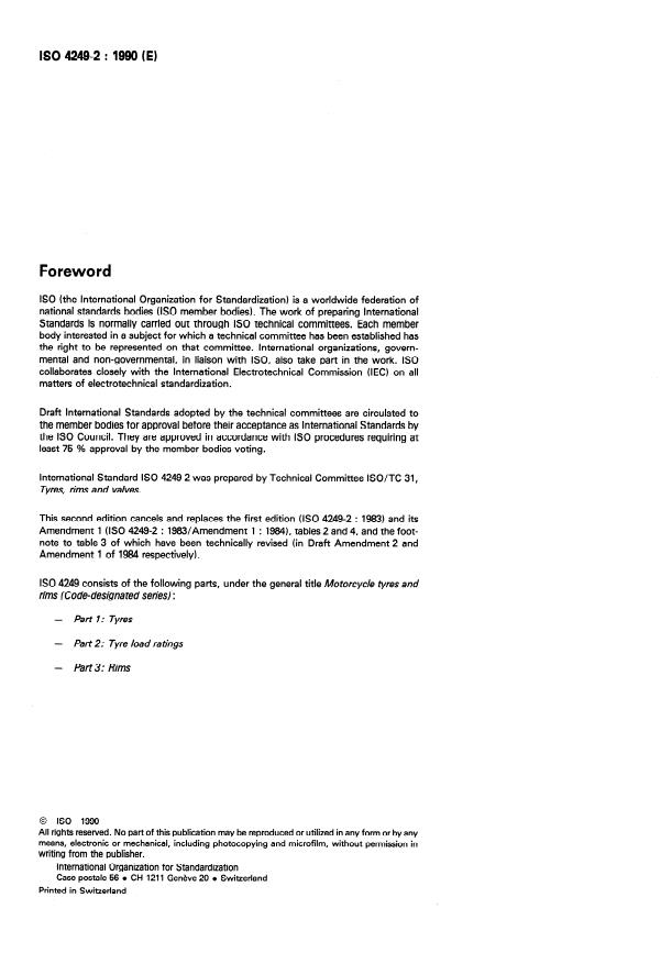 ISO 4249-2:1983 - Motorcycles tyres and rims (code designated series) - Part 2: Tyre load ratings - Effective Date