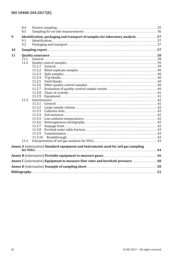 Keywords: ISO 18400-204:2017, soil gas sampling, VOCs, passive sampling, active sampling, monitoring wells, sub-slab, sampling plan, soil gas dynamics, quality assurance.