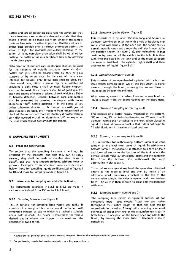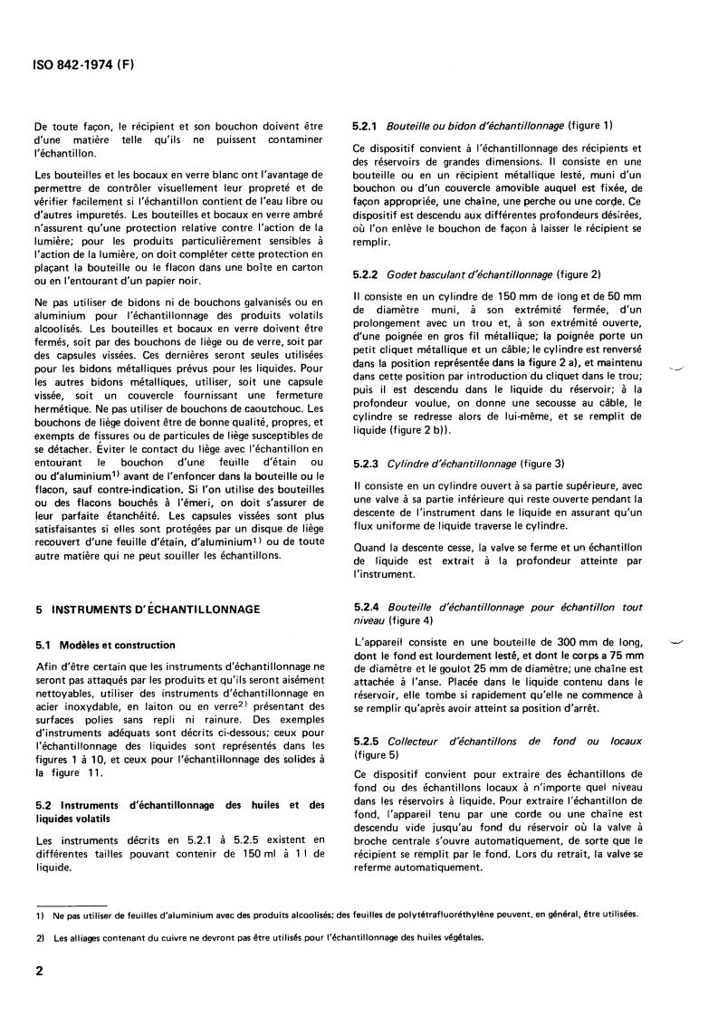 2) Les alliages contenant du cuivre ne devront pas être utilisés pour l'échantillonnage des huiles végétales.